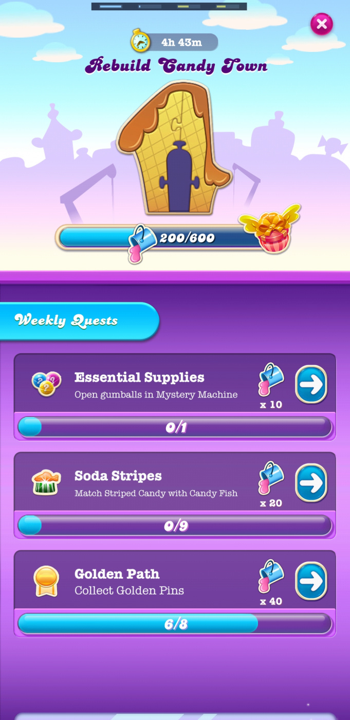 600 milestone: I was able to finally complete that gumball quest only to have a normal task and then another gumball request after. Seriously, again? How can I not think the event tries to make me fail? What's the deal with the fixation with "Essential" Supplies? So here we go again with having only 2 active quests. (When I just finished collecting Yeti's golden tickets, Rebuild Raffle appeared as if to mock me. But luckily clearing new hard levels was valid just the same. Finally some mercy in this agony.) The reward for this last milestone was the disappointing amount of 1 lollipop hammer and 3 gold bars. Well, it's pretty disproportionate, to say the least.