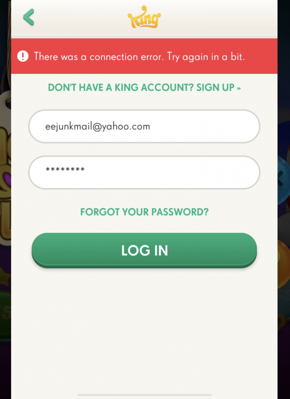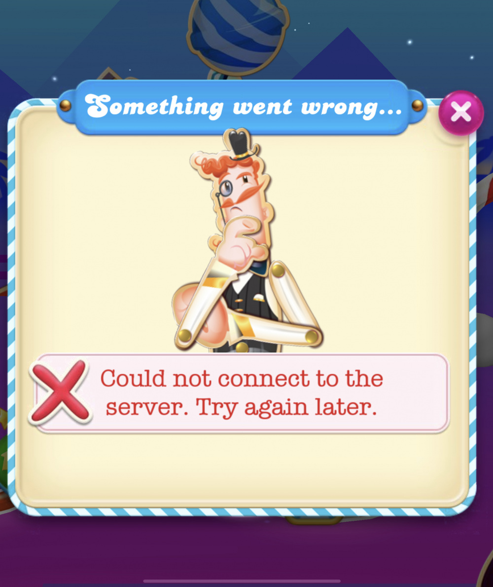 @QzzyBee Hi and welcome . the connection error you are showing at present the only fix for this is to uninstall and reinstall the game , but in doing this you will lose any stored boosters or lives. please see post below for more details