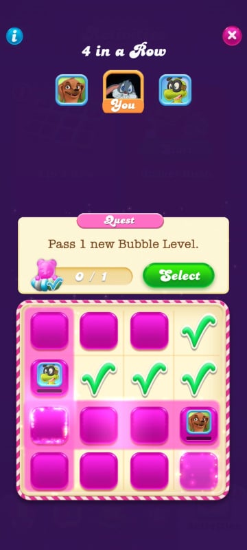I have complained a lot here about the bots in the Four in a Row game. They don't play the game, they just move around the board and block all of your moves. I have been playing this one game for 3 days now and cannot complete a line because of these two bots. I really wish king would do something about this.