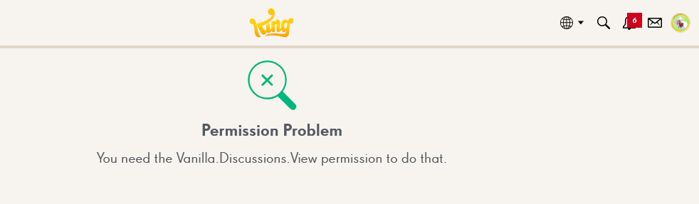 Permission Problem You need the Vanilla_Discussions.View permission to do that.