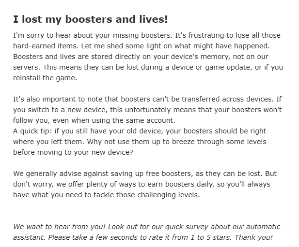 Hola. Salí del juego, dejando mí sesión como ganador y tomando los regalos del comienzo del día y a los minutos vuelvo a ingresar y al jugar, me doy cuenta que me sacó la racha y sus ventajas. Estoy molesto.