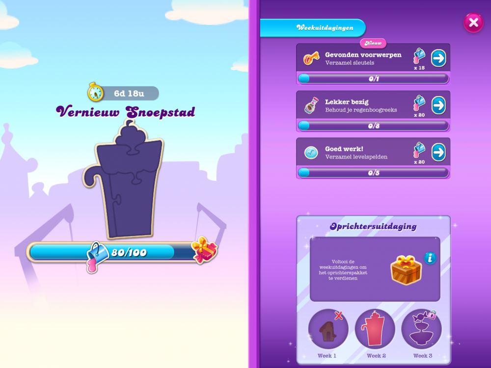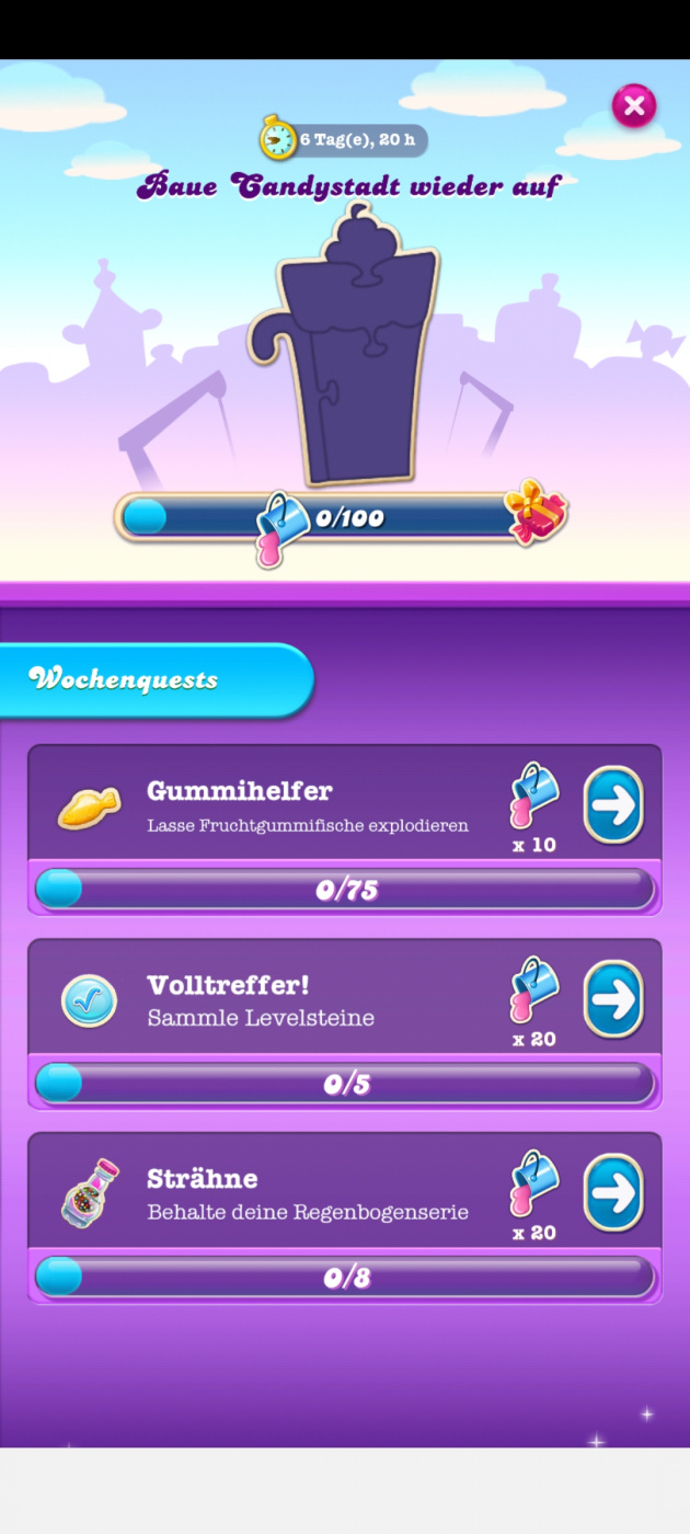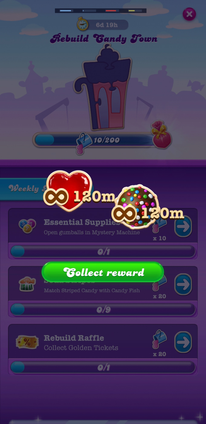 2 · Helpful 1Woah! Sweet Love 1HahaWaiting for week 2 rebuilding the town. I hope the tasks doable for all crushers. I failed the 1st week even though I play CCSS a lot last week