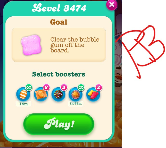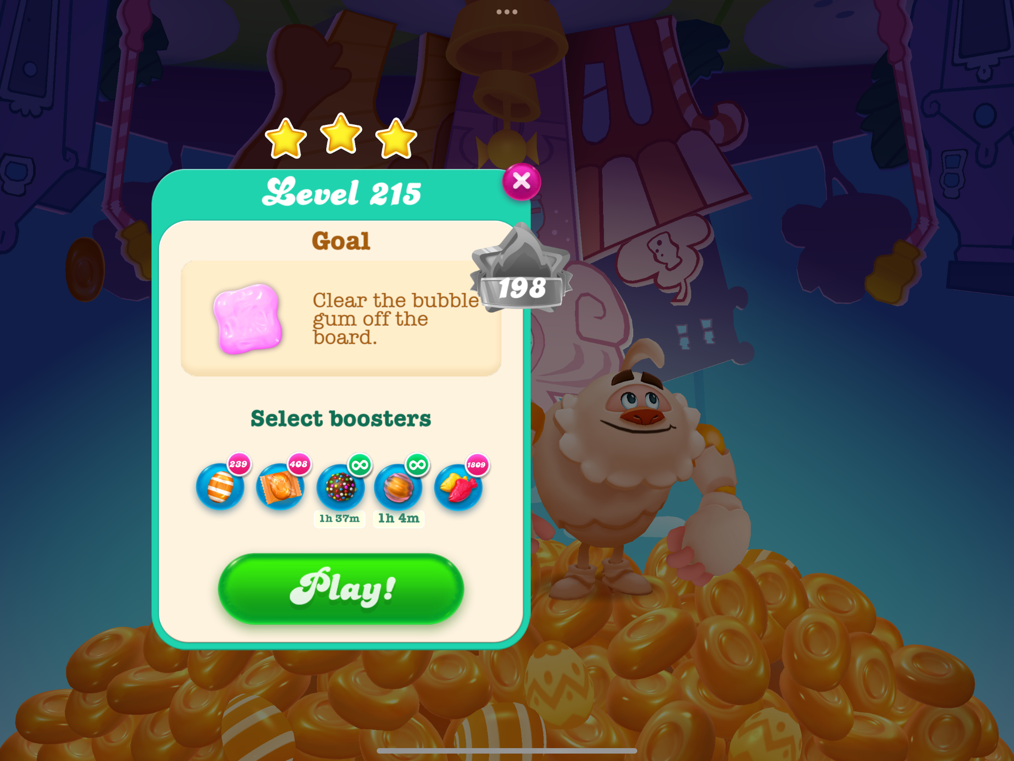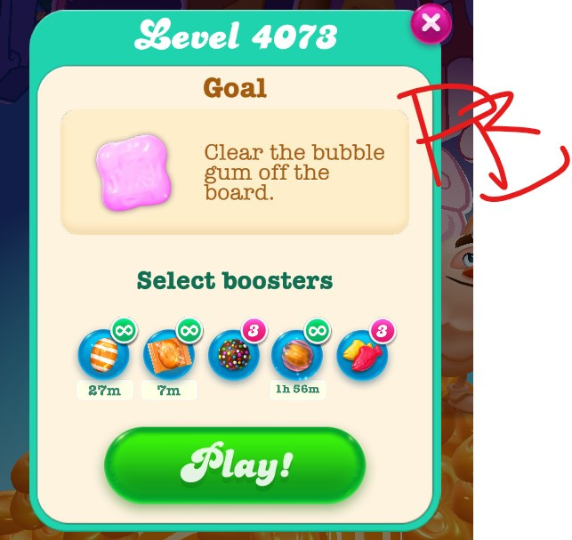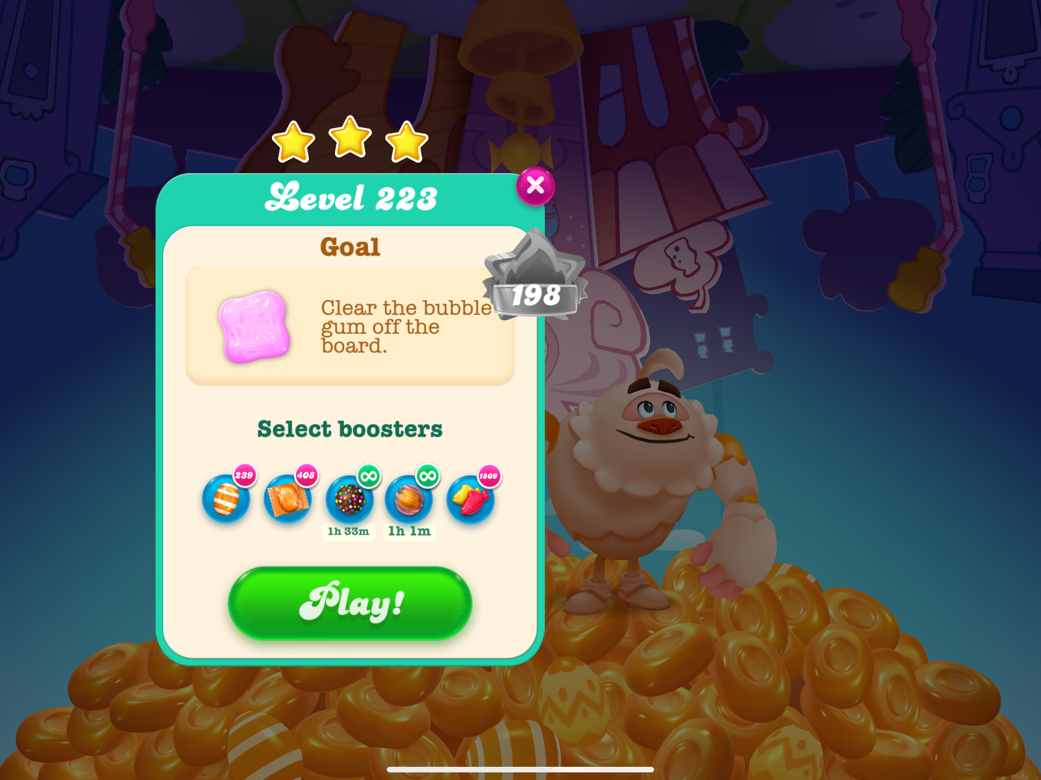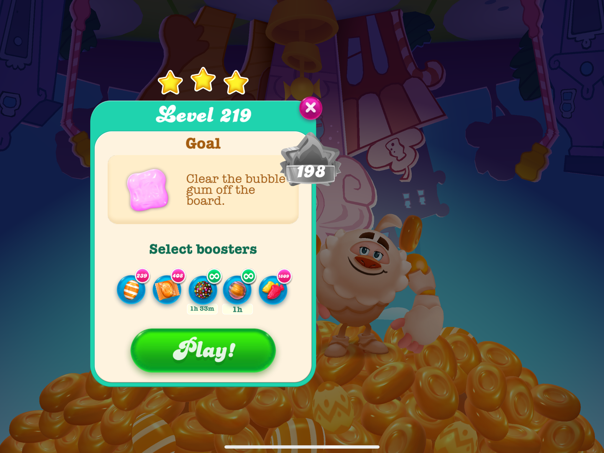 - Play any bubblegum level above 211 (first bubblegum level is 211).