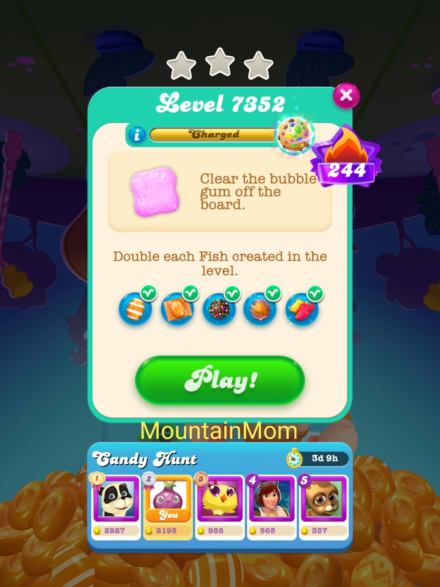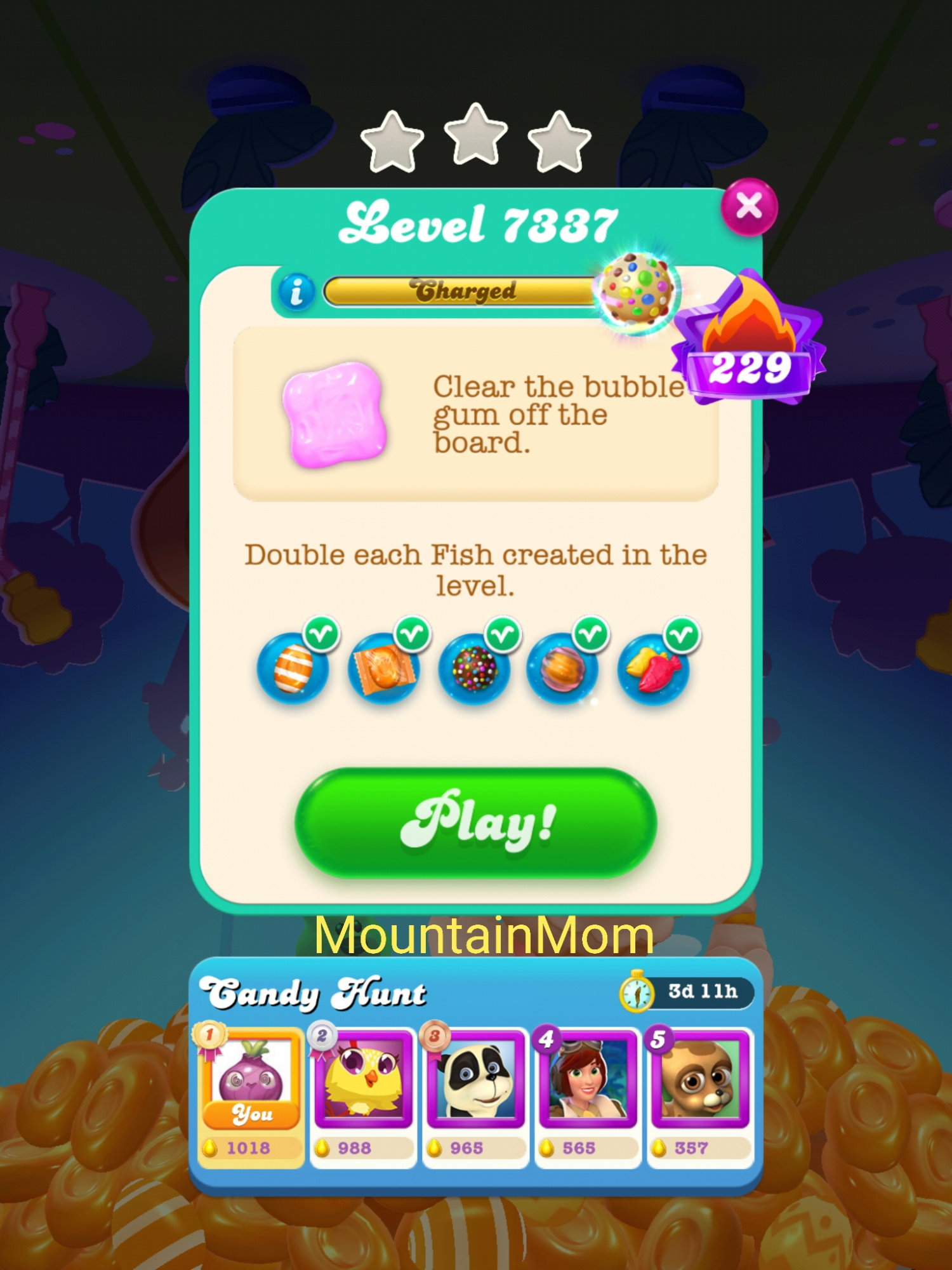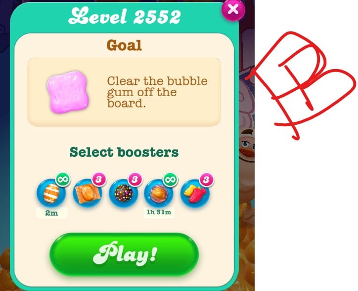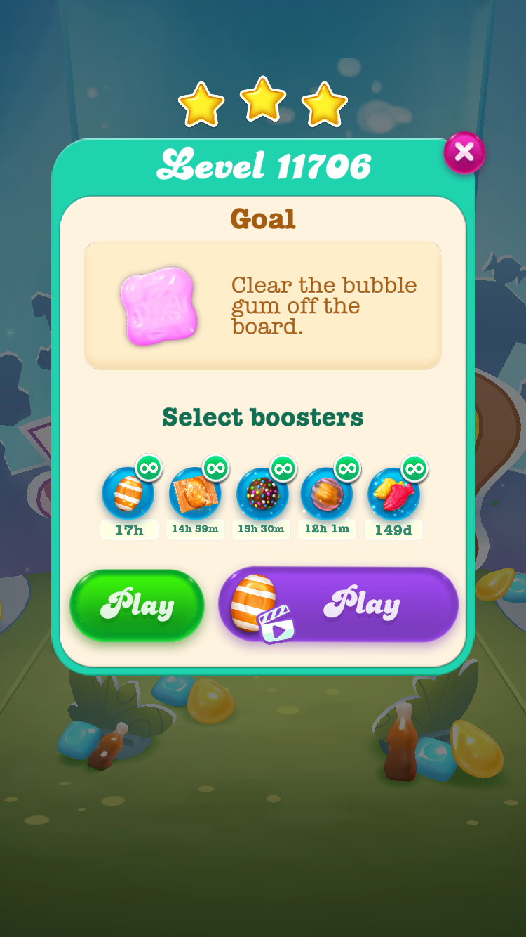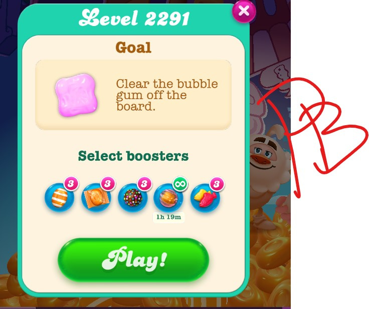 - Play any bubblegum level above 211 (first bubblegum level is 211).