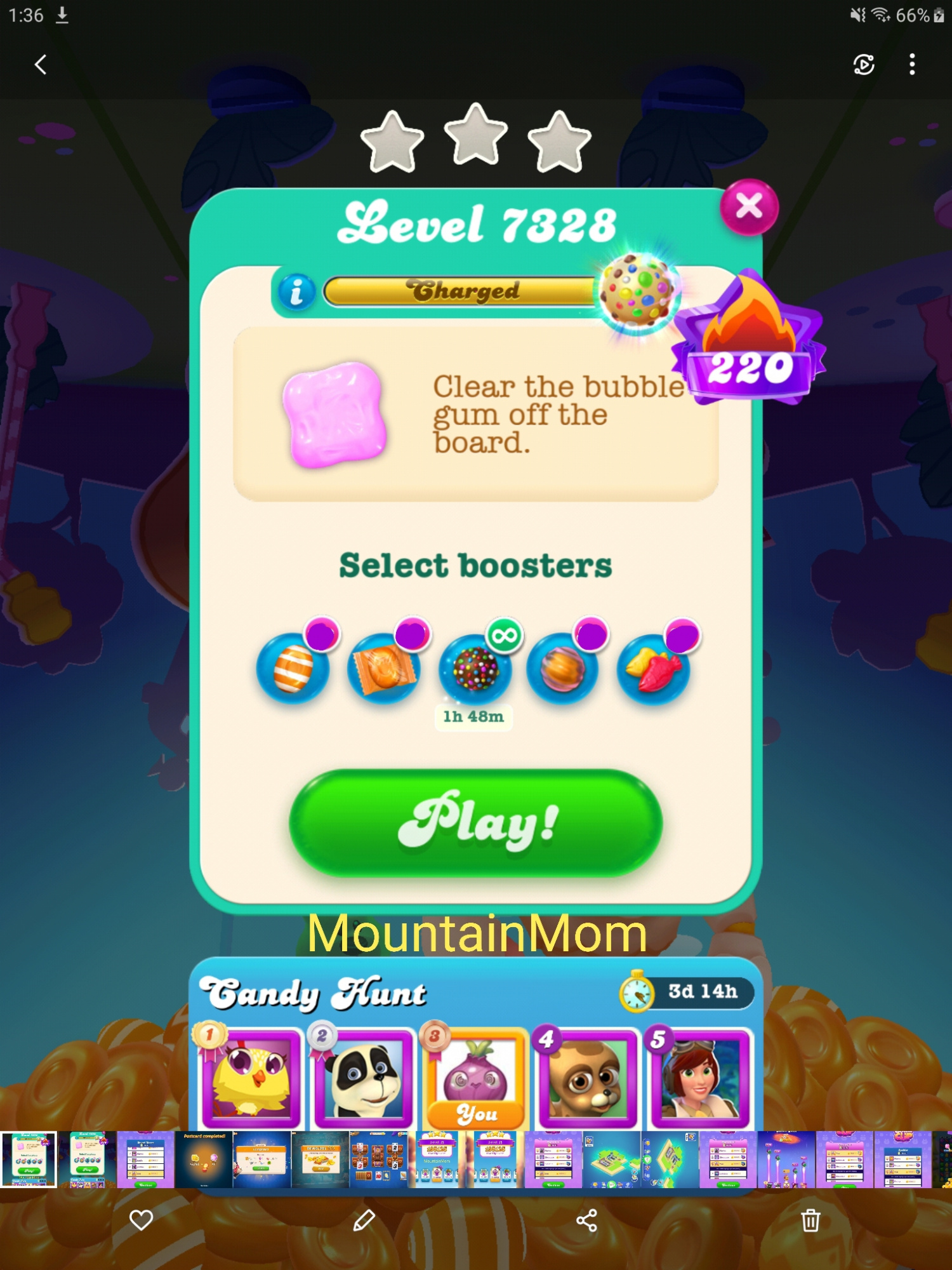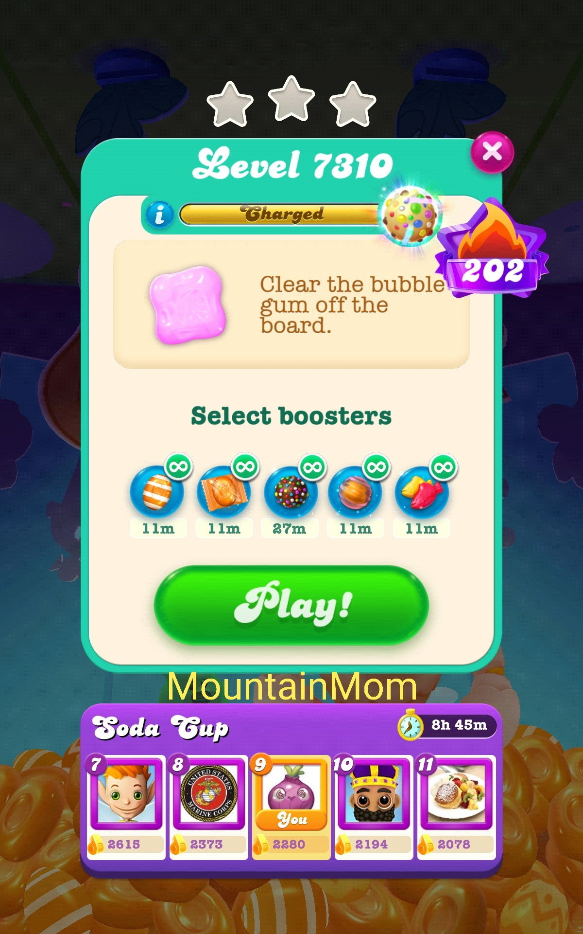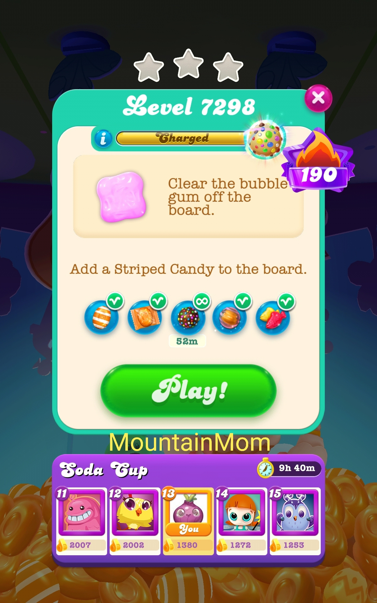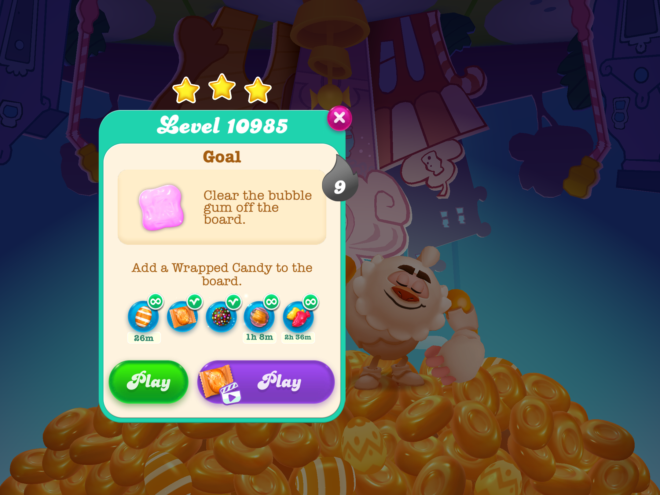 - Play any bubblegum level above 211 (first bubblegum level is 211).