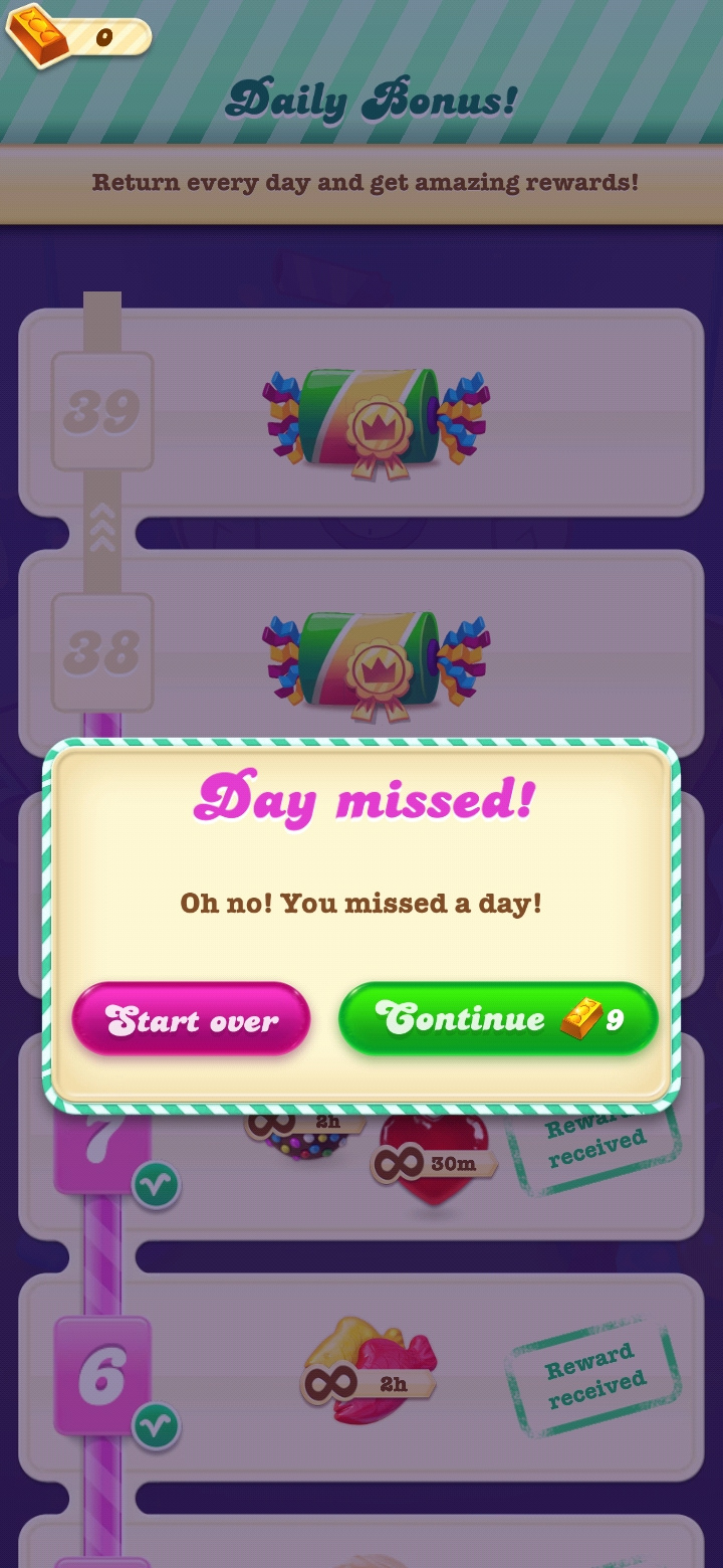 Hola. Salí del juego, dejando mí sesión como ganador y tomando los regalos del comienzo del día y a los minutos vuelvo a ingresar y al jugar, me doy cuenta que me sacó la racha y sus ventajas. Estoy molesto.