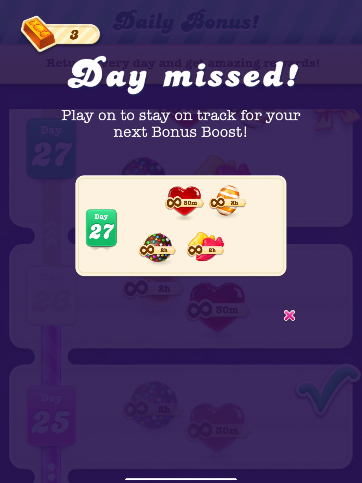 Hola. Salí del juego, dejando mí sesión como ganador y tomando los regalos del comienzo del día y a los minutos vuelvo a ingresar y al jugar, me doy cuenta que me sacó la racha y sus ventajas. Estoy molesto.