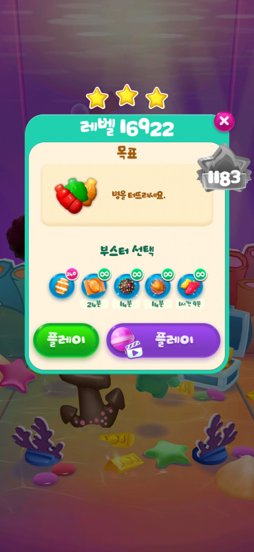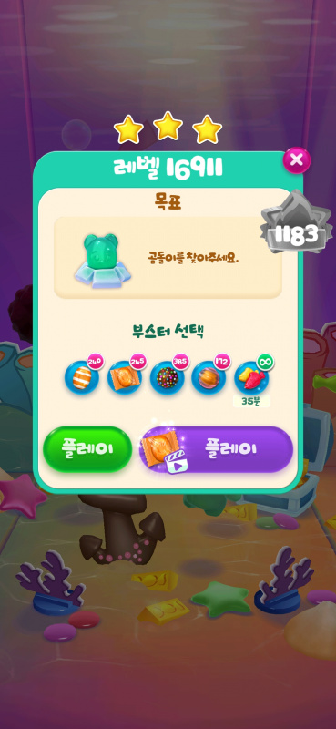 Collect a total of 500 colors in red, green, blue, yellow, and orange, purple, darker blue can also be counted as well as special candies and fish π