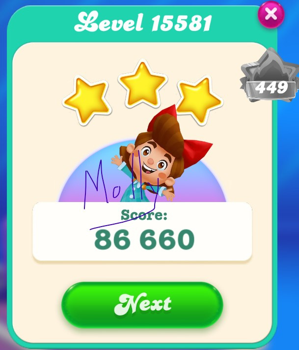 Play 3 sprinkleshell levels add your 3 ending scores this will be your total score