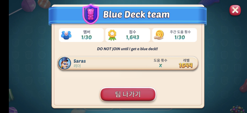I made another team, only to get done with blue deck completely. Do NOT join until I get a blue deck!