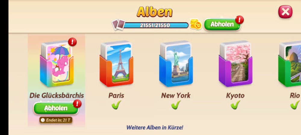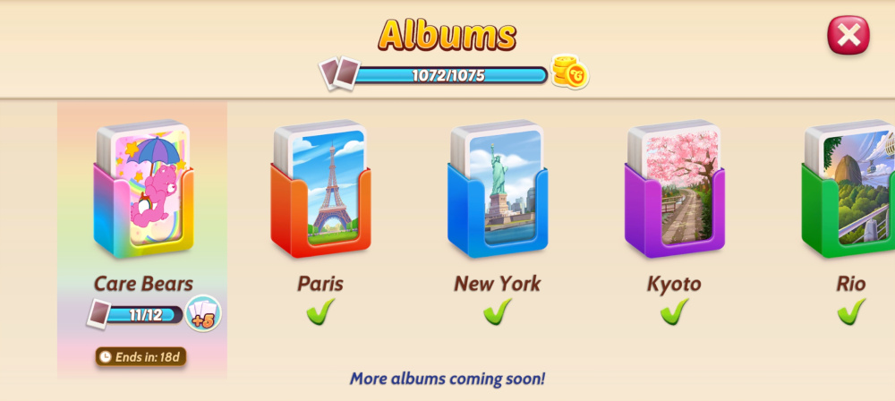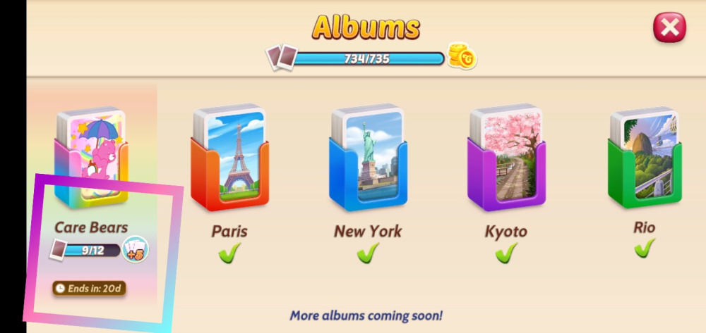 Collect your Care Bears Cards through events (not levels) and complete your album by November 30 to keep them forever!