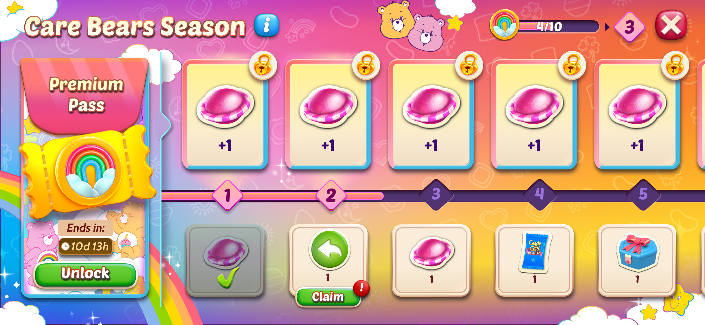 This Season Pass is extra special! Instead of one, you can earn four exclusive Care Bears card decks through Premium Pass!