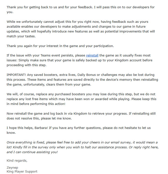 I had the same issue, nothing will be resolved even via support as you can see, I did too reached out to them and this is their reply: