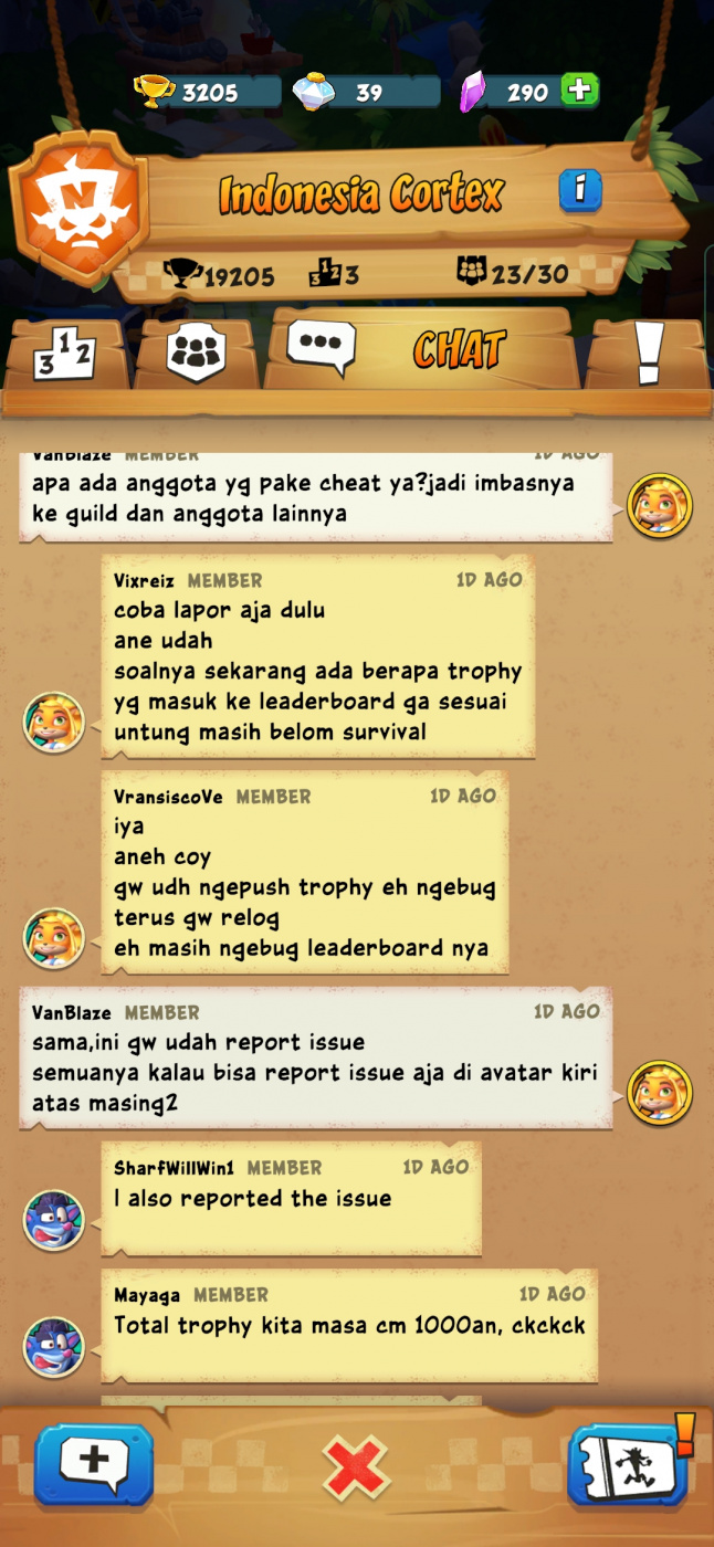 For example, my trophy 2.567, but after i check in guild (indonesia cortex) is not match between my trophy mine and in the guild(600+) can you fix it,coz not only me but many member indonesia cortex same problem like this,actually we rank 1 but now rank 3...please fix it dev ,thank a lot