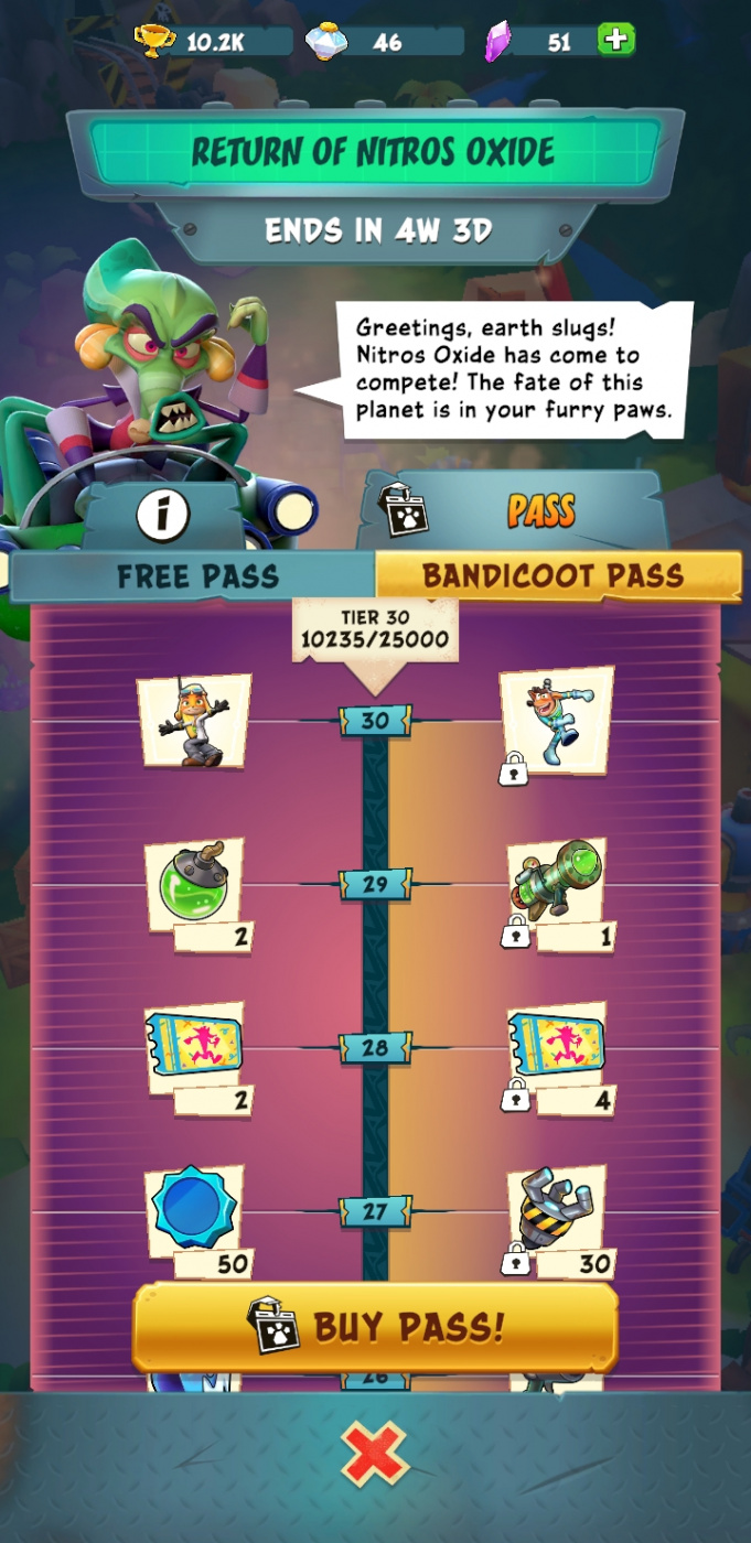 What do you mean? In the bandicoot pass, the left side prizes are the free pass, the right side are the premium pass where you need to buy it in order to get the prizes.