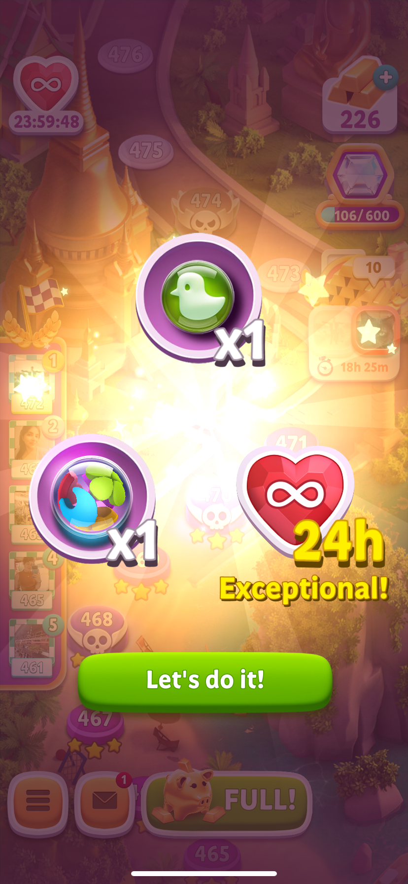 Wow! You're really extremely lucky as you won 24 hours of unlimited lives in Diamond Diaries Saga again! Congratulations again! 🎉🎊👏😄