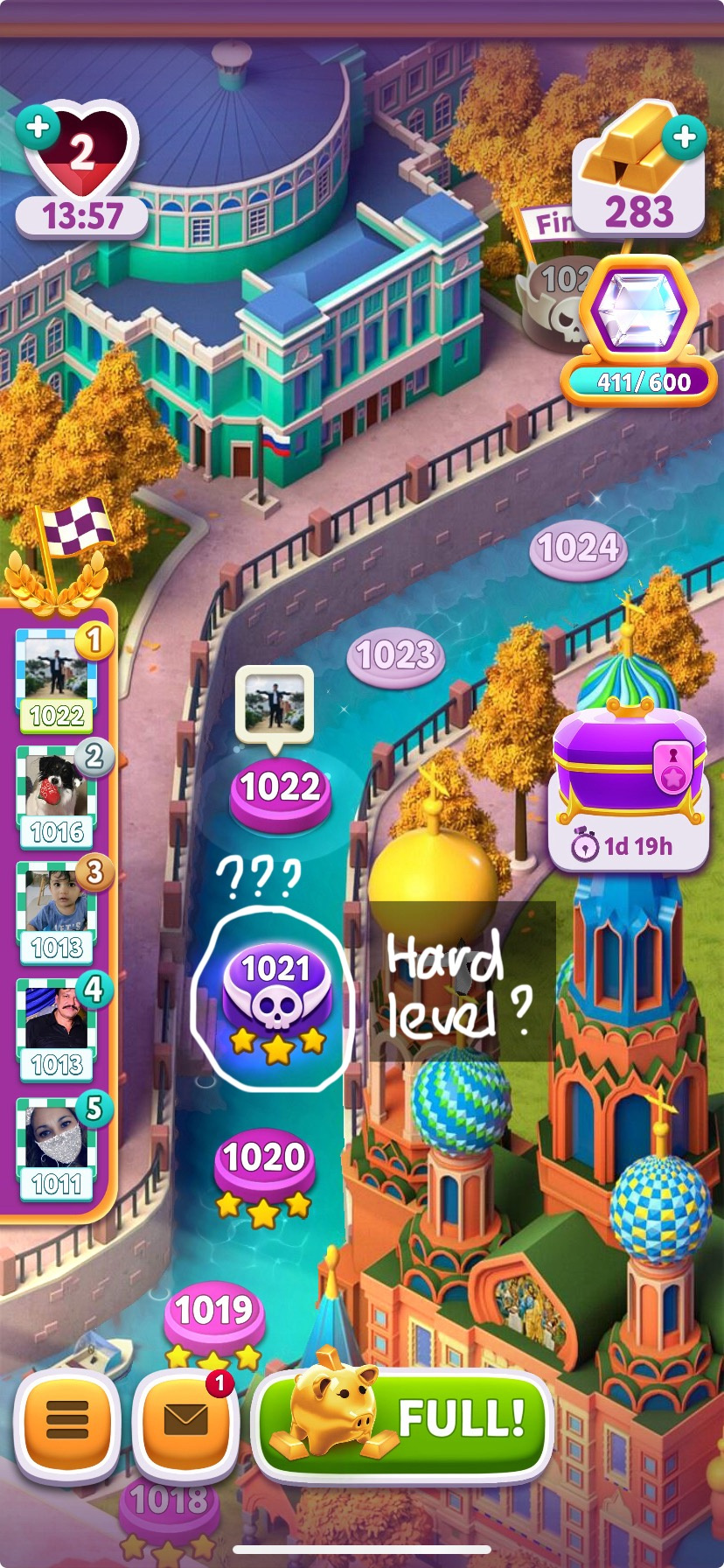 I passed level 1021 in the first try. So, why it is set to hard level? It has 25 moves but I only use 23 moves… How hard it can be?🤔