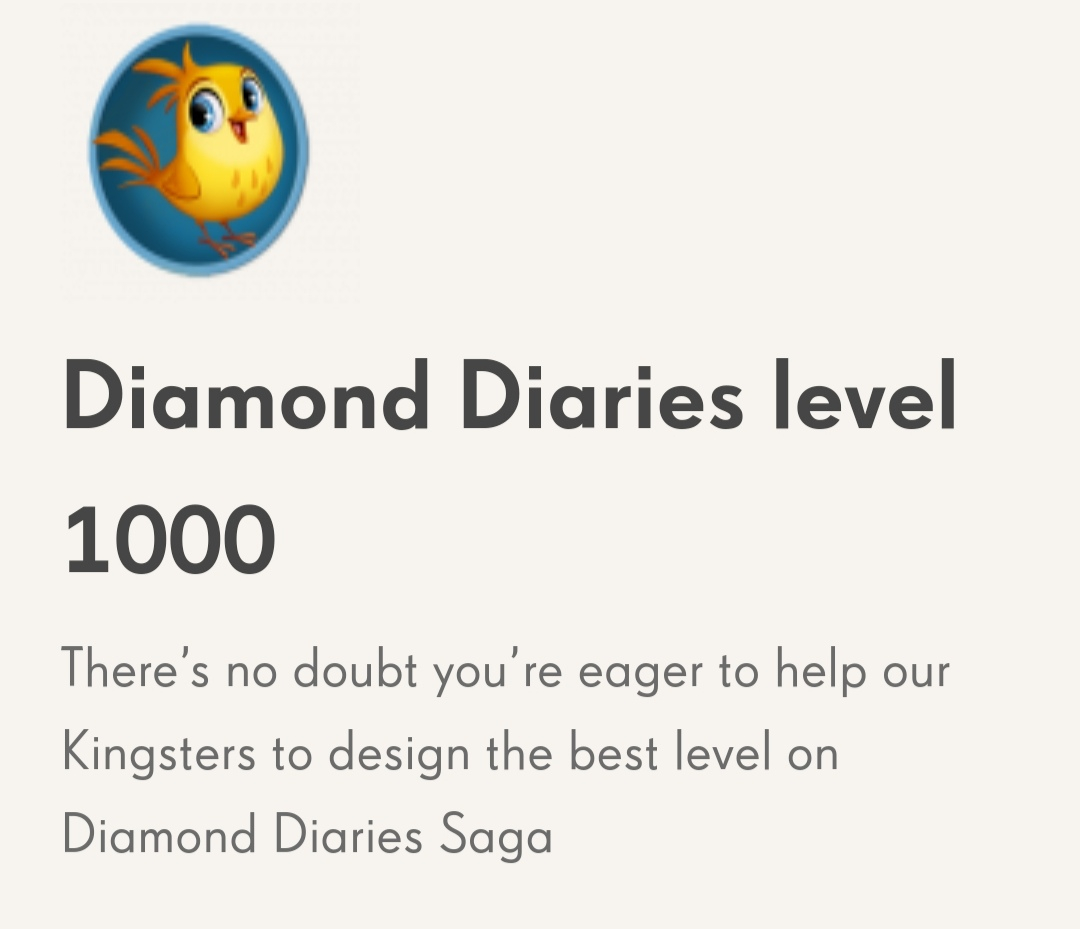 So we can see what's happening for level 1000 on Diamond Diaries Saga? Stay tuned! 😉
