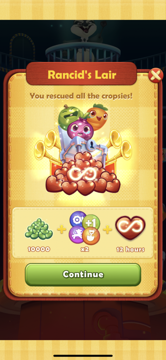 4 · 2Helpful Woah! 1Sweet Love 1Haha@MrKizart Yeah, double rewards is not a great prize for beating Rancid's Lair. But, it sure beats the alternative of 6 hours of unlimited lives, which is a common reward. I don't want to play any game for 6 hours. I've got a life!