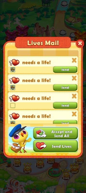 Porque não tô conseguindo enviar vidas e receber vidas