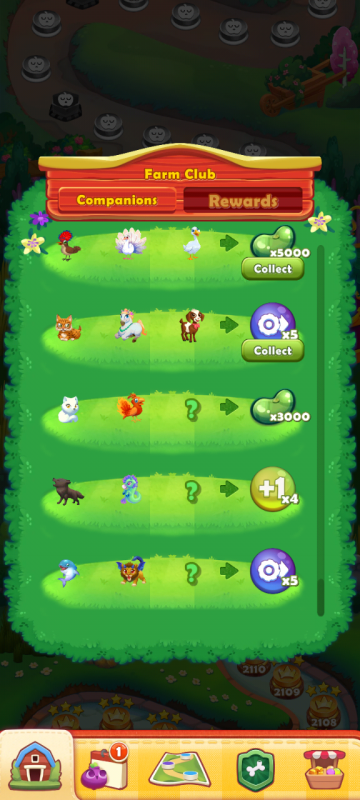 You may see a '?' symbol in the Farm Club Companions rewards screen, and are unable to collect the final rewards. This is because after level 1110, no further Companions are being included in the levels.