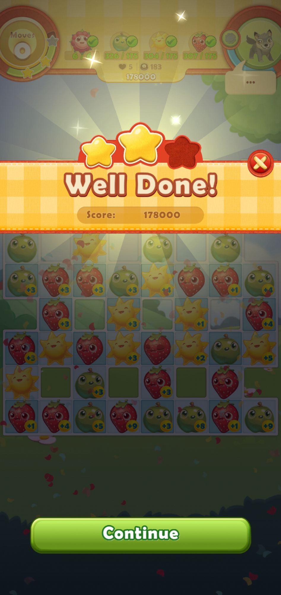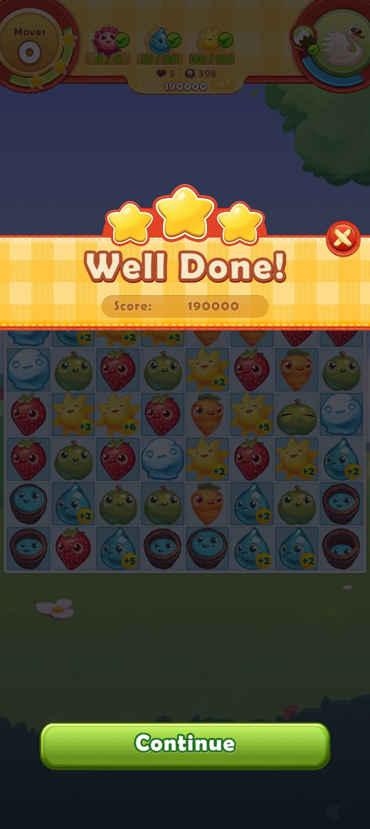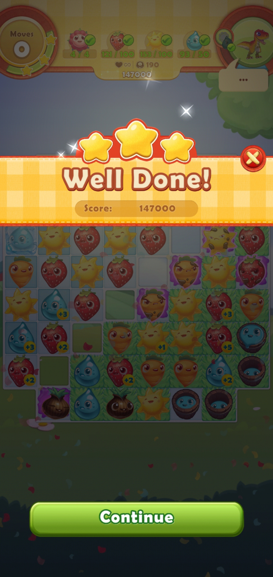 - A screenshot that shows you won the level - with stars/beans count, etc.,;
