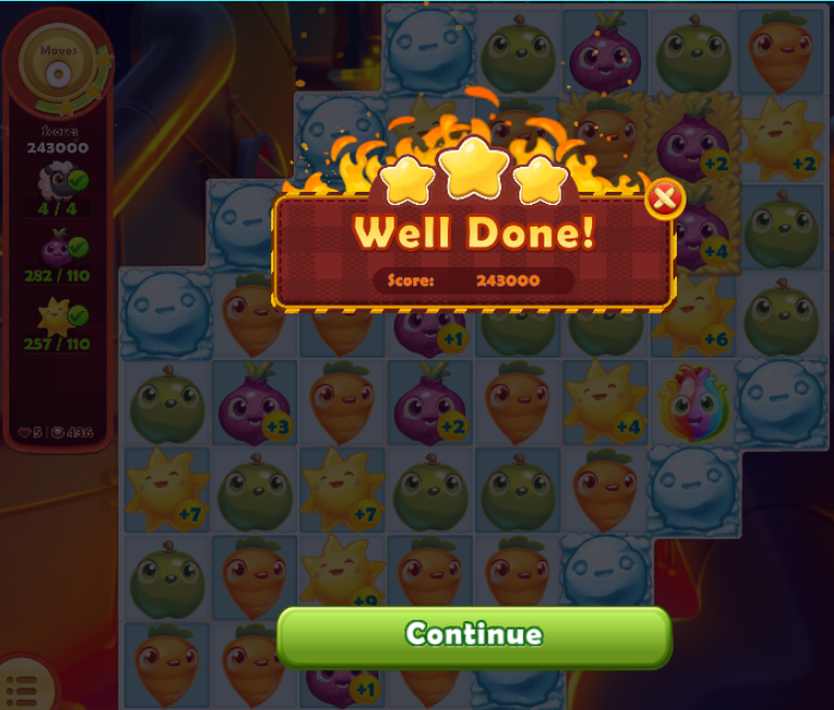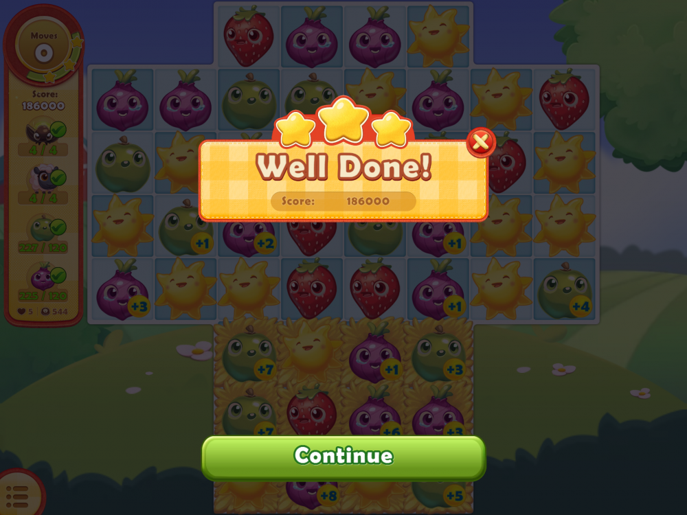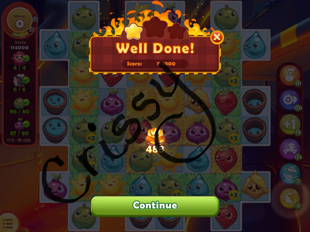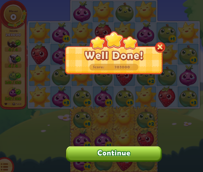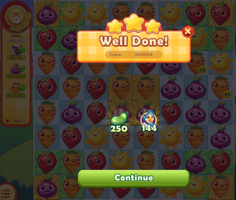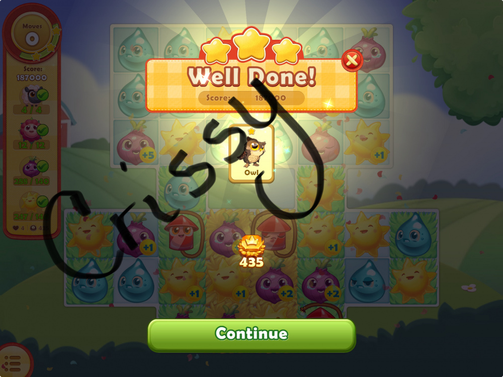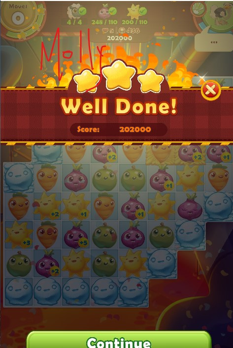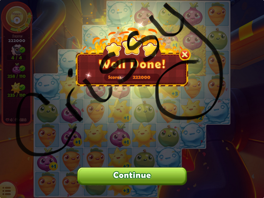 - A screenshot to show you won the level - with stars/beans count, etc.,;