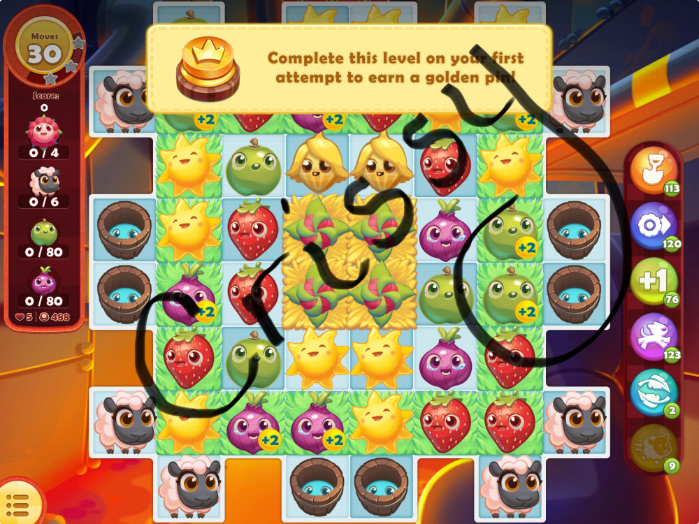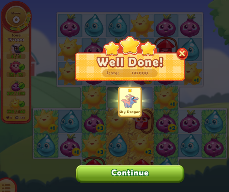 NOTE: Only cropsies from your level's goal count, not your end-of-level total. Pick levels with high cropsie goals for the best chance to win!