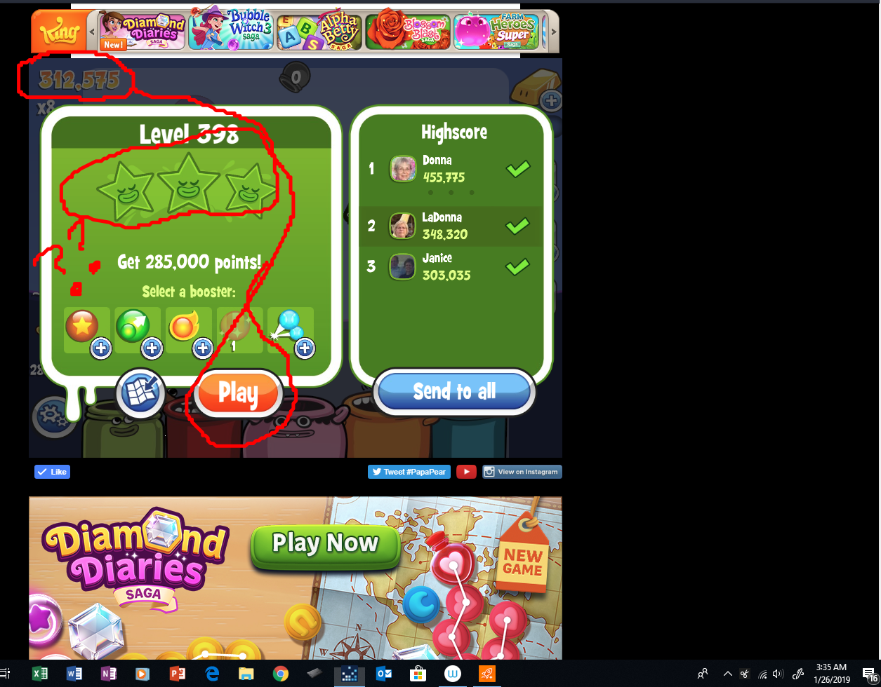 Level 398 -- Scored 312,575, only needed 285,000 But not credited with a pass, why?