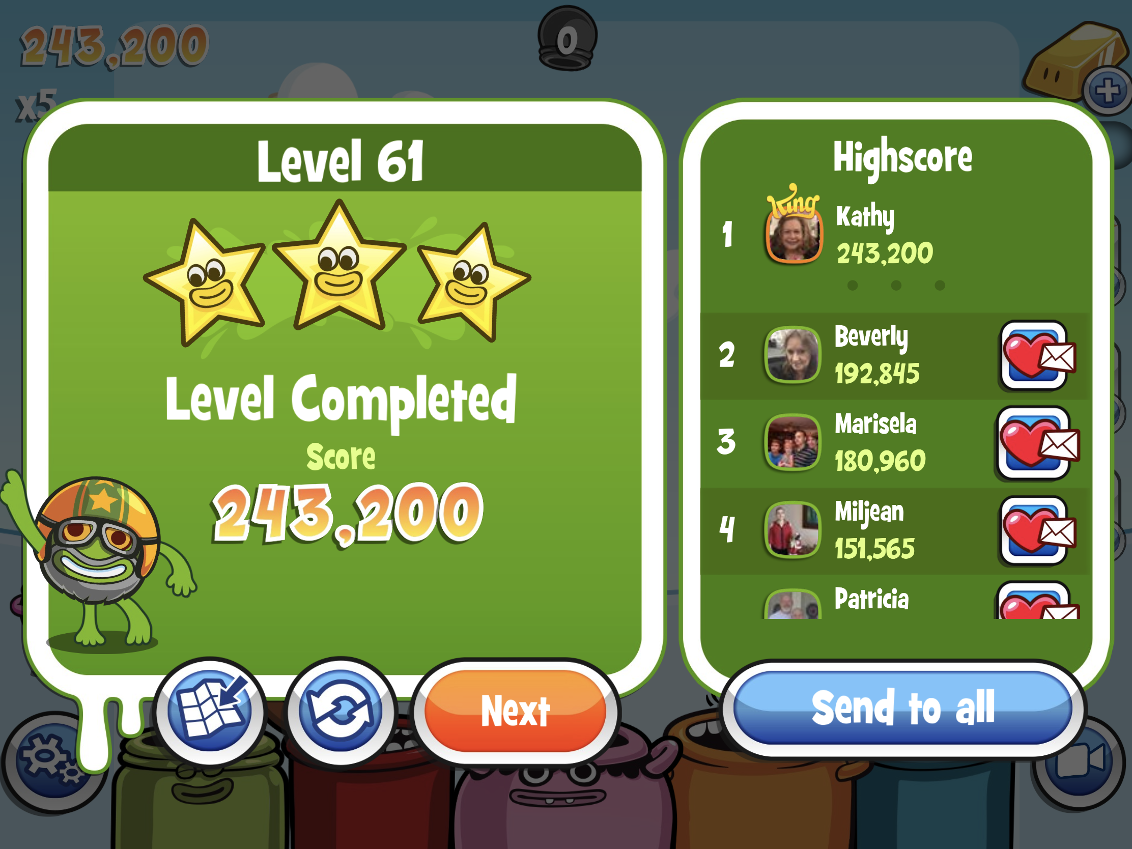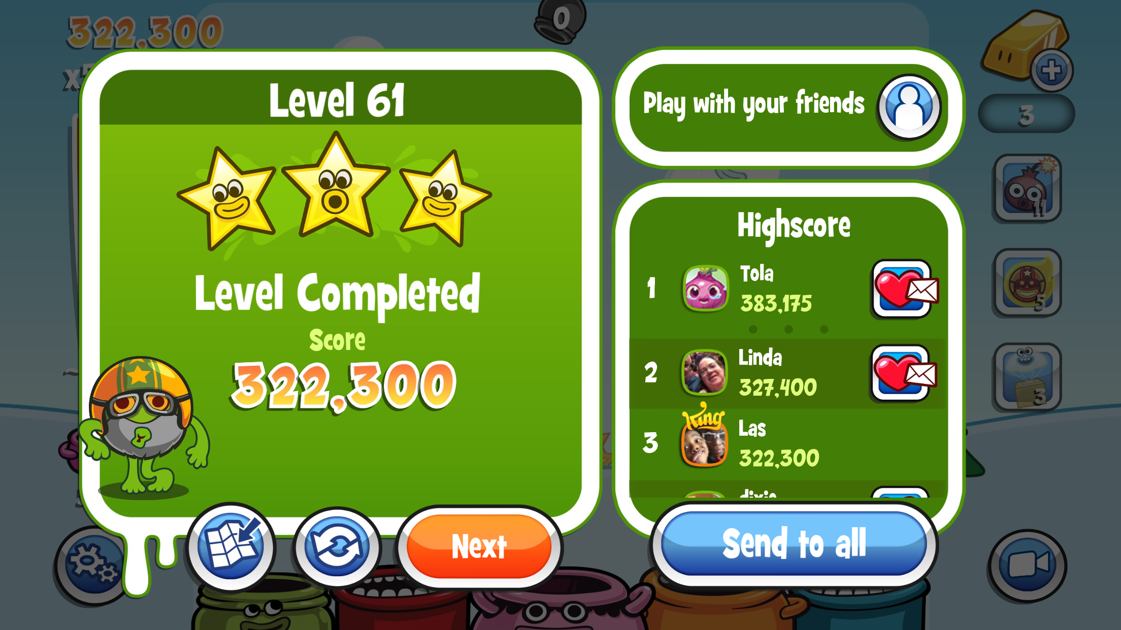 The player that get the highest score on the level will win 30 Gold Bars. Second best score will give 20 Gold Bars and the third one 10 Gold Bars.ย