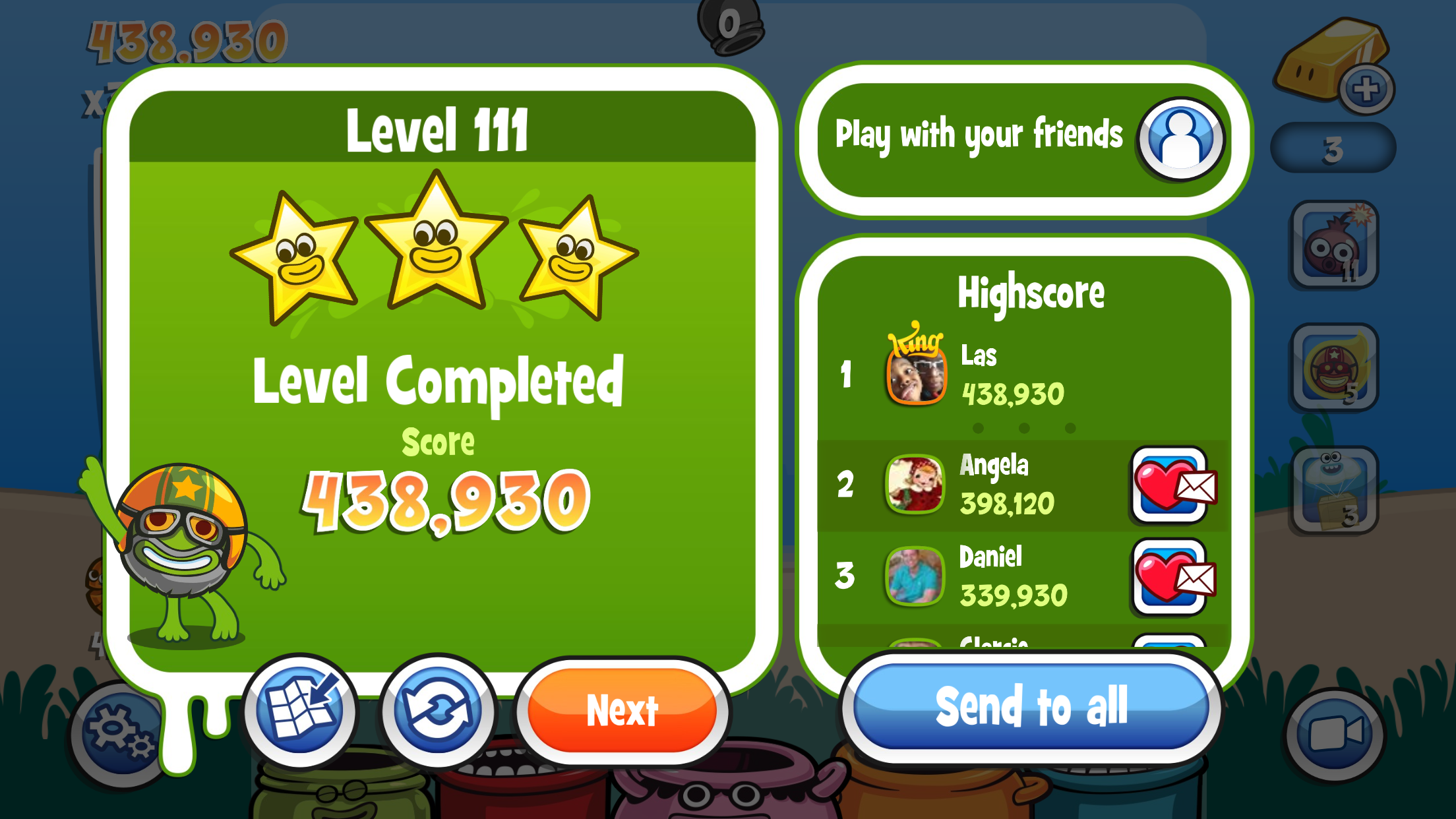The player that get the highest score on the level will win 30 Gold Bars. Second best score will give 20 Gold Bars and the third one 10 Gold Bars.ย