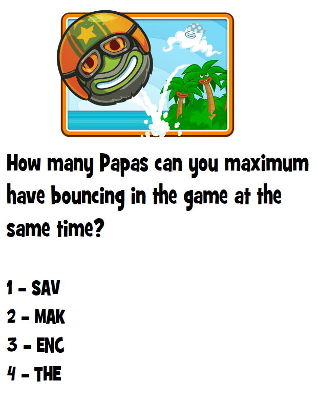 0 · Helpful Woah! Sweet Love HahaMy Answer is "You can bouncing maximum 3 Papas at same time!"