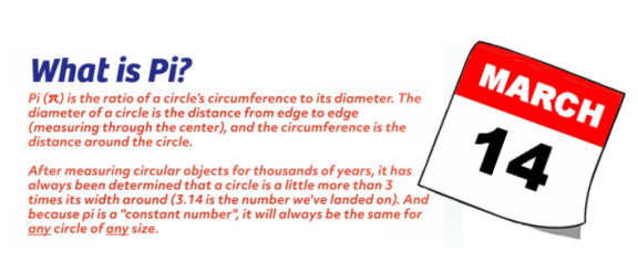 0 · Helpful Woah! Sweet Love HahaPi Day is celebrated on March 14th (3/14) around the world. Pi (Greek letter “π”) is the symbol used in mathematics to represent a constant — the ratio of the circumference of a circle to its diameter — which is approximately 3.14159. Pi Day is an annual opportunity for math enthusiasts to recite the infinite digits of Pi, talk to their friends about math, and to eat Pie.