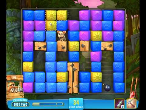 The best strategy is to clear large clusters of blocks in order to gain rockets and use them on the ledges that the pets are standing on. That should do the trick!