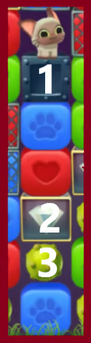 The first thing you need to note is that Pets only fall in a column that has three specific blocks in it already. These are a metal block, a diamond and a virus block, as pictured below.