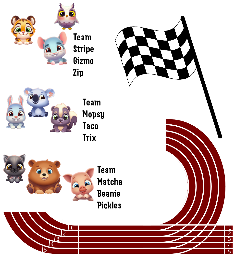 A cat, bear and pig. Bears and cats are fast, but will the chubby pig slow the team down in the end?