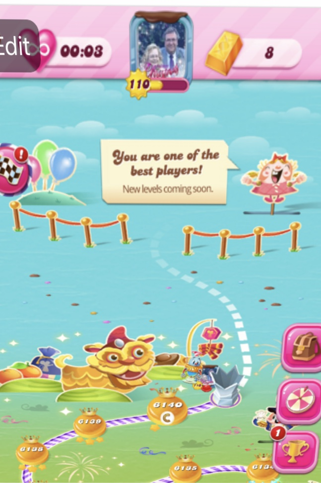 Β Β Β Β Β Β I love to play the King games - especially Candy Crush Saga- I am at level 6140 and waiting for more levels on the iPhone/ iPad. Many of my levels were won on the first try. I mostly play the other games while waiting.